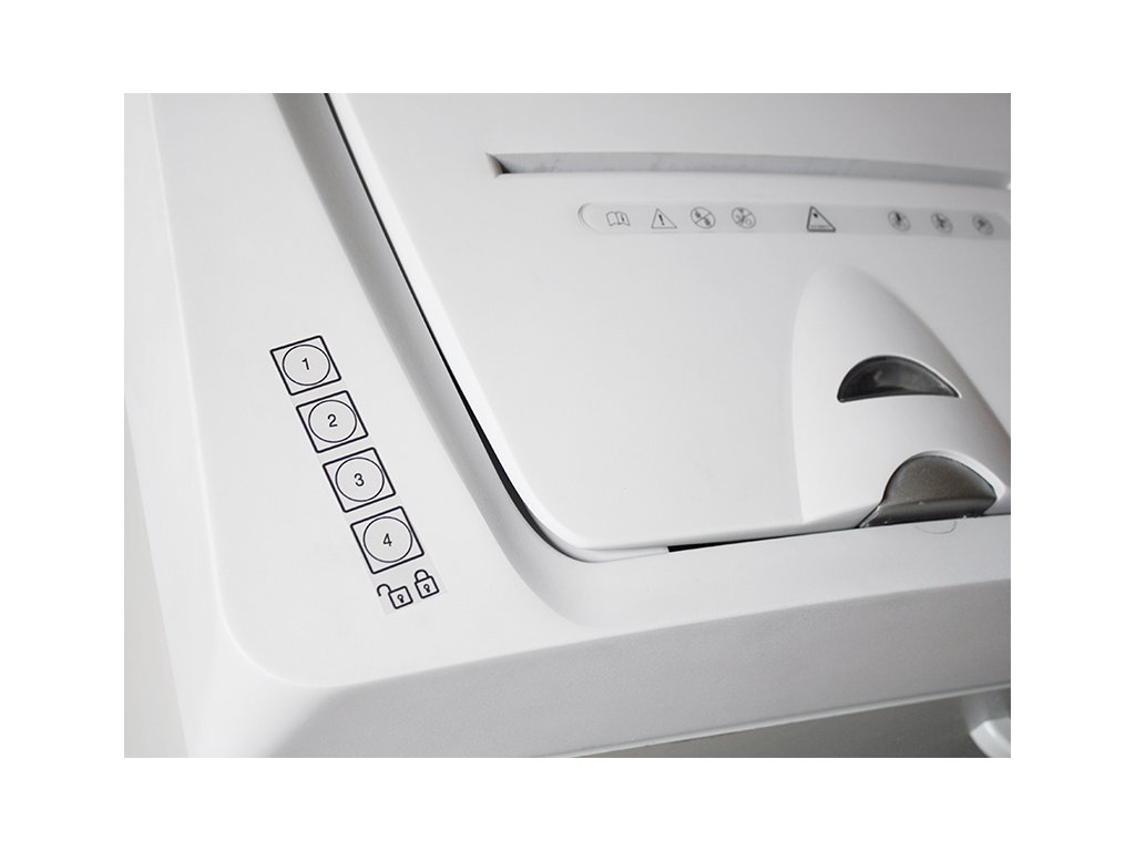 Stroj obsahuje čtyřmístný elektronický kombinační zámek, který během skartace chrání informace na dokumentech před zraky nepovolaných osob.