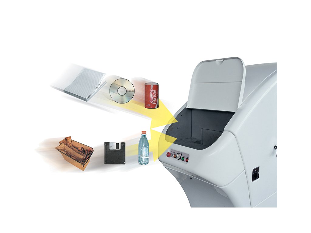 | Skartuje | Papír, svorky, sponky, CD, platební karty a diskety |