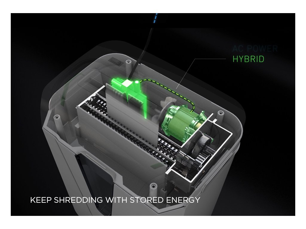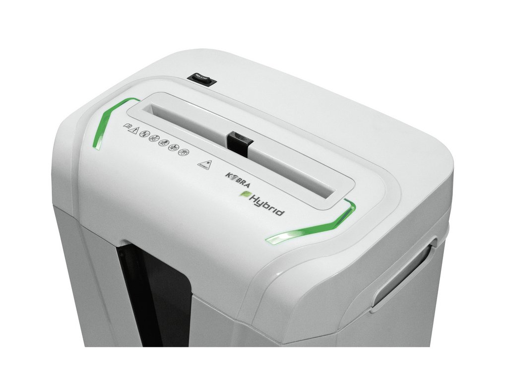 Kobra Hybrid je vybavena nejnovějším systémem řízení spotřeby, model Hybrid-S je vybaven zvýšeným výkonem. Exkluzivní technologie umožňuje provoz s uloženou energií a automatické vypnutí z elektrické sítě po dokončení skartace pro nulovou spotřebu elektrické energie. Hybrid Power Management System je patent společnosti Elcoman, který umožňuje až 15% prodloužení skartace díky uložené energii. Kapacita skartace až 14 listů papíru najednou a kreditní karty, křížový řez 3,5 x 40 mm (P-4).