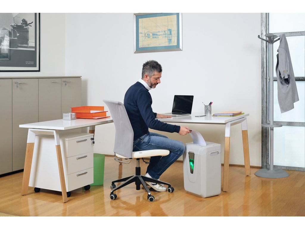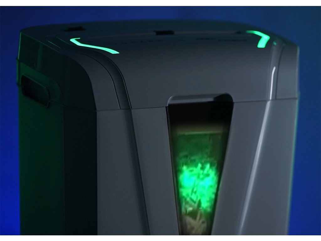 Spolehlivý a odolný mechanismus s motorem s nepřetržitým provozem 24 hodin nabízí bezkonkurenční výkony spolu s nejatraktivnějším designem a LED technologií. Skříň o objemu 30 litrů s předním okénkem s LED osvětlením pro kontrolu stavu skartovaného materiálu. Šetrný k životnímu prostředí, protože nevyžaduje plastové sáčky.