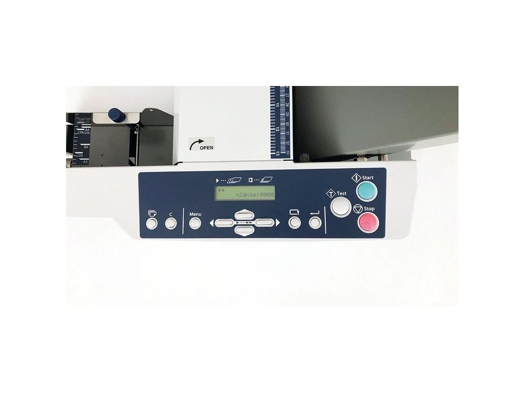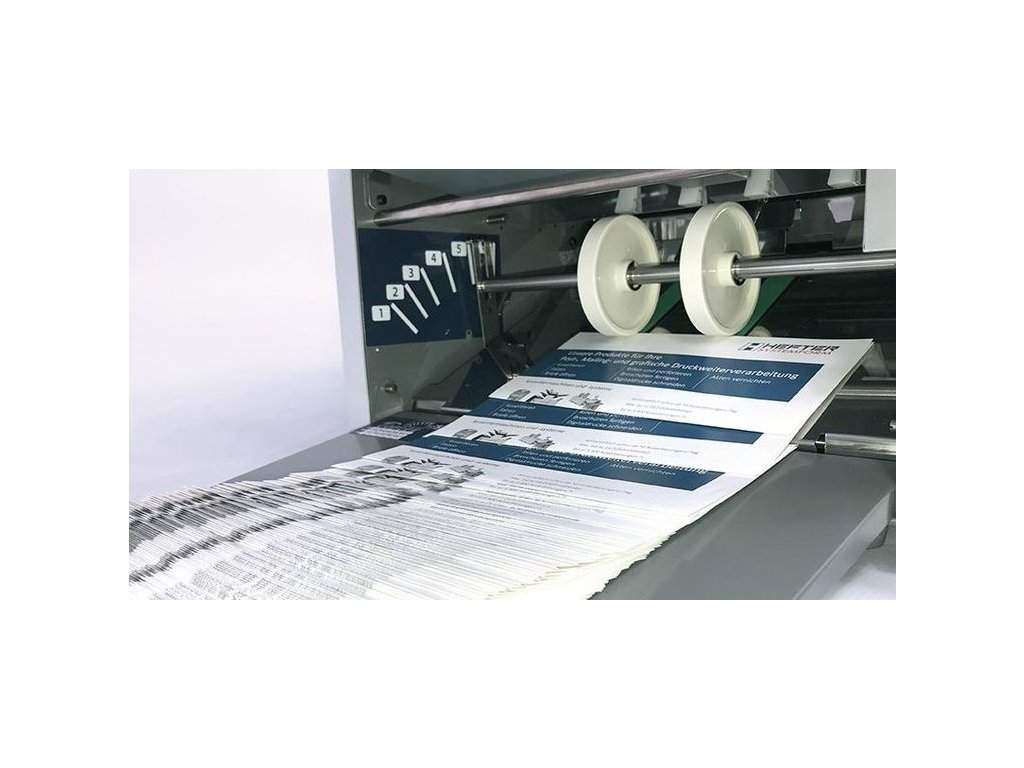 Kromě toho má TF MEGA-M plus přednastavený čítač s intervalem. To umožňuje stroj pracovat s pevnou rychlostí s krátkou přestávkou v pevných intervalech, takže obsluha může odstranit daný počet seskládaných listů bez zastavení stroje. 7 typů skladů: V - sklad na půl C - sklad Z- sklad W - dvojitý sklad O - oltářní sklad Zeichnungsfalz a Křížový sklad