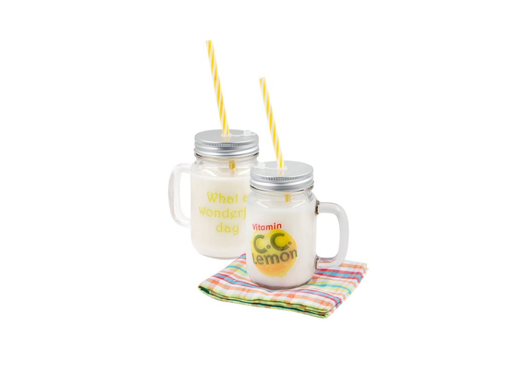 Tyto zavařovací sklenice Mason se dodávají s pocínovaným ocelovým víčkem s otvorem na brčko a skvěle se hodí pro pití nápojů. Můžete je také proměnit v ideální nádobu pro kuchyňské recepty – jako želé, džemy, omáčky, bylinky, koření, čaj, mouku nebo cukr. Lze také použít jako ozdobné předměty za použití knoflíků, korálků a podobně. Dále s personalizovanými sublimačními obrázky dokonce předčí své standarní funkce a bude chutnou ozdobou nebo pěkným dárkem.