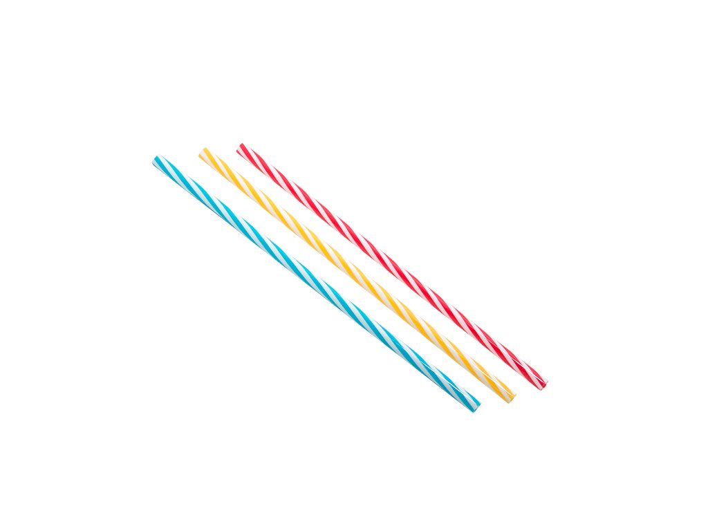 V každém balení je 6 ks plastových brček v barvách: modrobílá , zelenobílá, bíločirá, červenobílá, černobílá, růžovočerná.