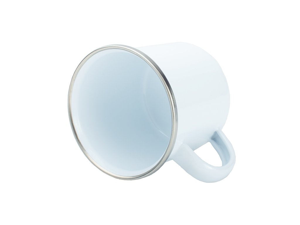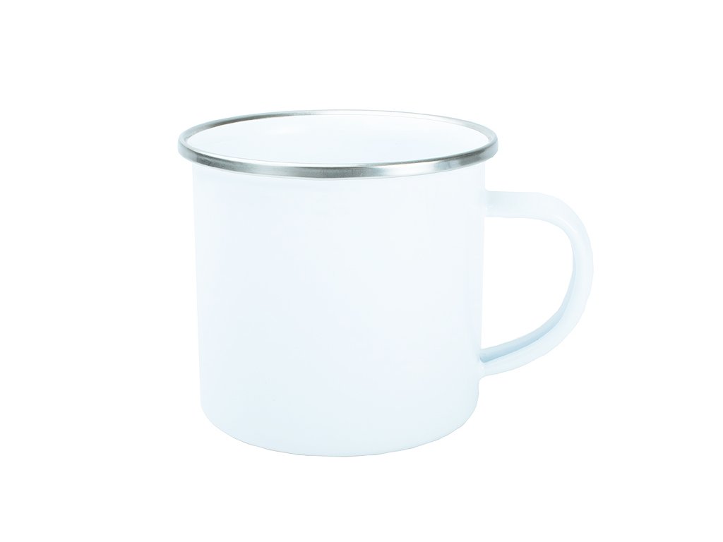 Smaltovaný plechový bílý hrnek 18 Oz - stříbrný lem