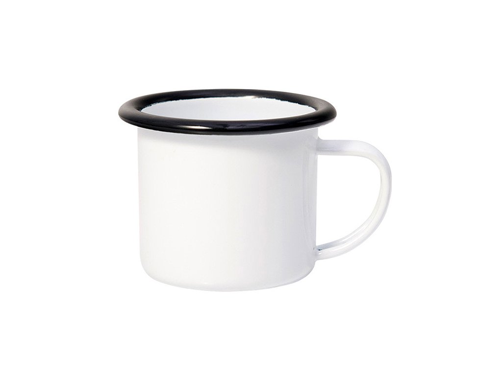 Smaltovaný plechový bílý hrnek 6 Oz - černý lem