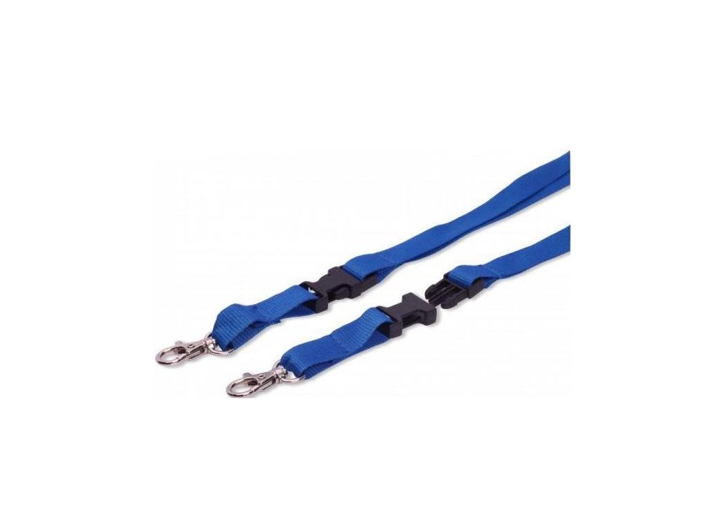 Šnůra na krk s kovovou karabinou a praktickými plastovými karabinami pro odepnutí. Šířka šnůrky 15 mm. Lze použít jako reklamní lanyard s potiskem – vhodná technologie sítotisk, transfer nebo sublimace.