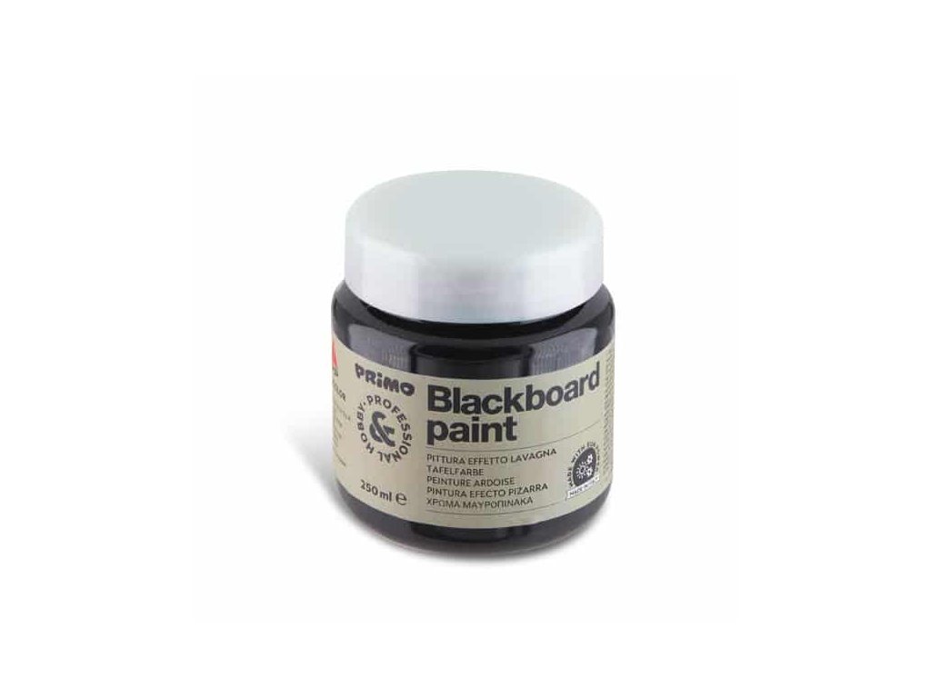Tabulová barva Primo je vysoce pigmentovaná, neprůhledná, matná barva, která zastává funkci tabule. Můžete na ni psát i malovat křídou a suchým hadříkem setřít. Výborně přilne k jakémukoliv hladkému povrchu: dřevo, kov, beton, dlaždice, plast, karton, zeď.