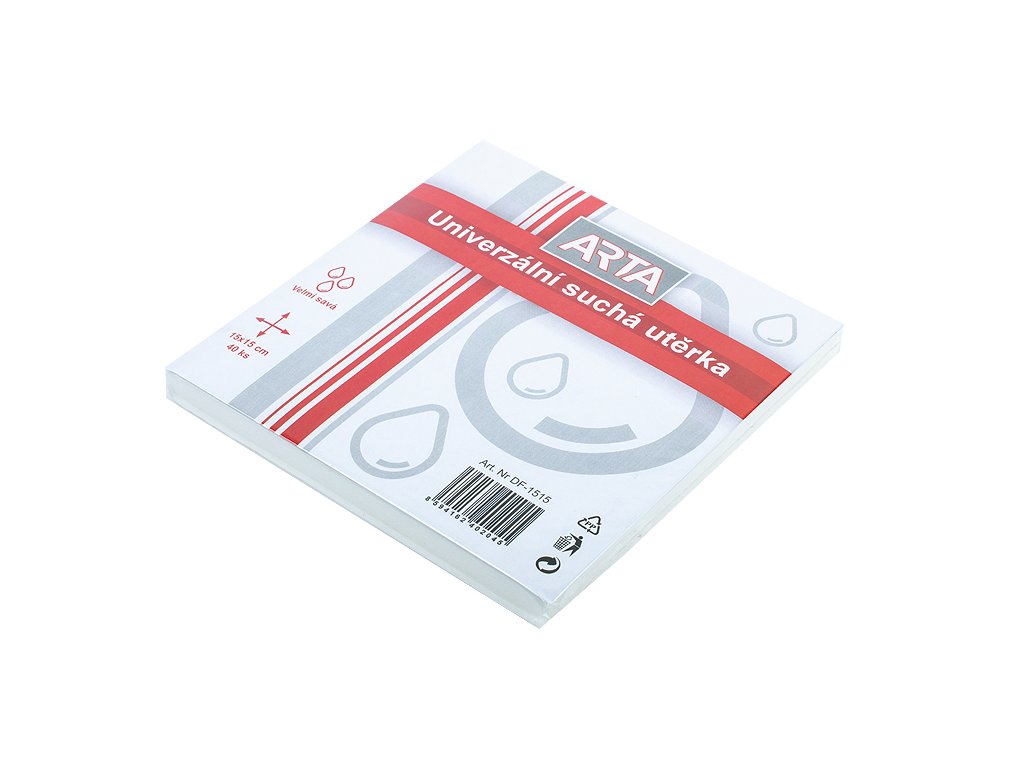 Univerzální suchá utěrka ARTA. Měkká a jemná velmi savá jednorázová utěrka, netřepí se, vhodná k použití za sucha i mokra. Ideální kompromis ceny a kvality. Použitelná pro všechny povrchy zejména na velké hladké plochy bílých tabulí, kopírek, scannerů, tiskáren a pracovních ploch. Vysoká savost zaručuje utřetí vlhké nečistoty na jedno přetření.
