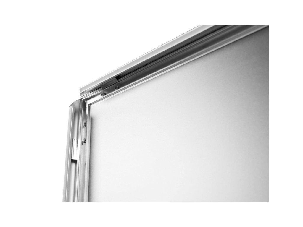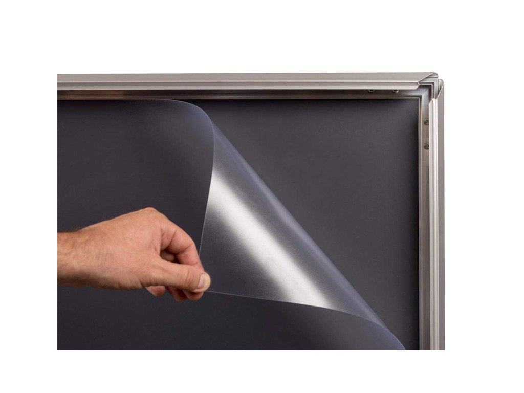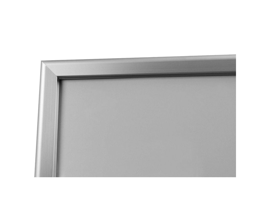Zaklapávací rám umožňuje výměnu plakátu během několika sekund. Silný plakátový obal je vybaven UV filtrem, který chrání výtisk před slunečním zářením a vyblednutím barev. Zaklapávací rám cedule je vyroben z 32 mm eloxovaného hliníkového profilu.