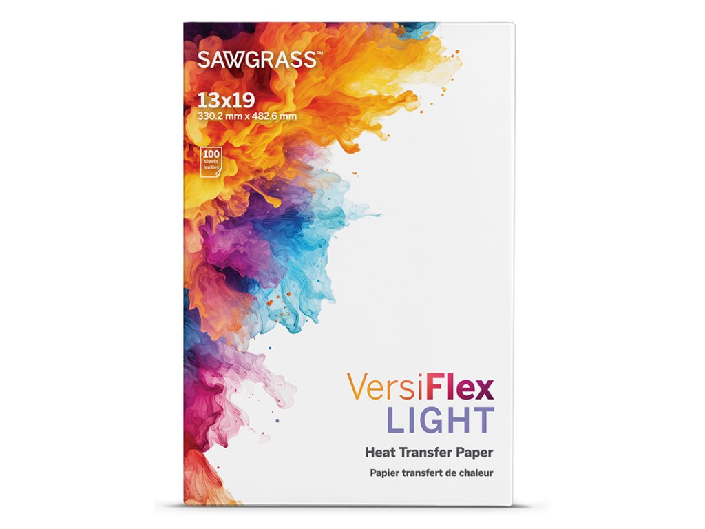 VersiFlex je širokospektrální řešení papíru a inkoustu pro dekoraci oděvů a tvrdých povrchů při použití jejich spolehlivých tiskáren - SG500 a SG1000. Spolupracuje s jejich stávajícím online návrhářským softwarem MySawgrass na klíč a softwarem Sawgrass Print Utility pro správu barev/tisku. Pomocí tohoto procesu můžete přenášet na kov, bavlnu, kůži, umělou kůži, keramiku, dřevo, kov a další. a přenášet na sublimační polotovary a polyesterová trička.